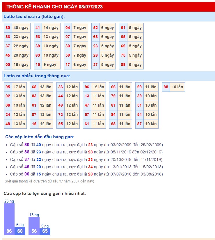 – Cầu Lotto đẹp nhất ngày 08/07/2023: 42, 24; 31, 13; 59, 95; 08, 80; 76, 67; 41, 14; 23, 32