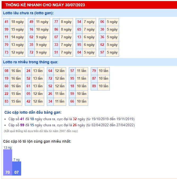 Thống kê soi cầu XSMB ngày 30/07/2023