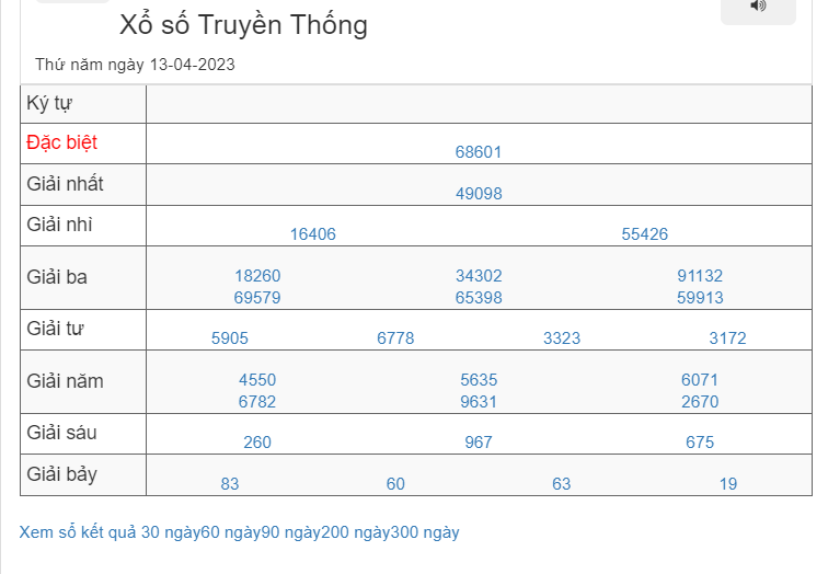 – Cầu Đặc biệt đẹp nhất ngày 13/04/2023: 62, 47; 37, 58; 24, 85; 41, 03; 82, 93; 14, 76; 30, 28; 15, 76;